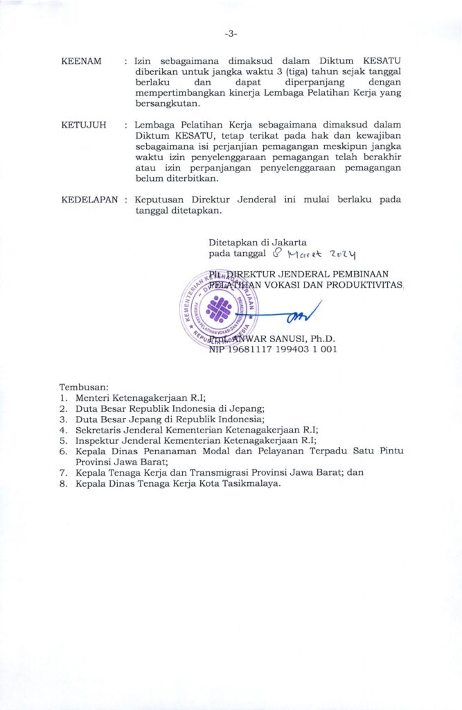 ライセンスの種類とレベルは、事業活動のリスクに応じて調整され、公式な職業訓練機関(LPK)および送り出し機関(SO)としての運営許可も含まれます。
